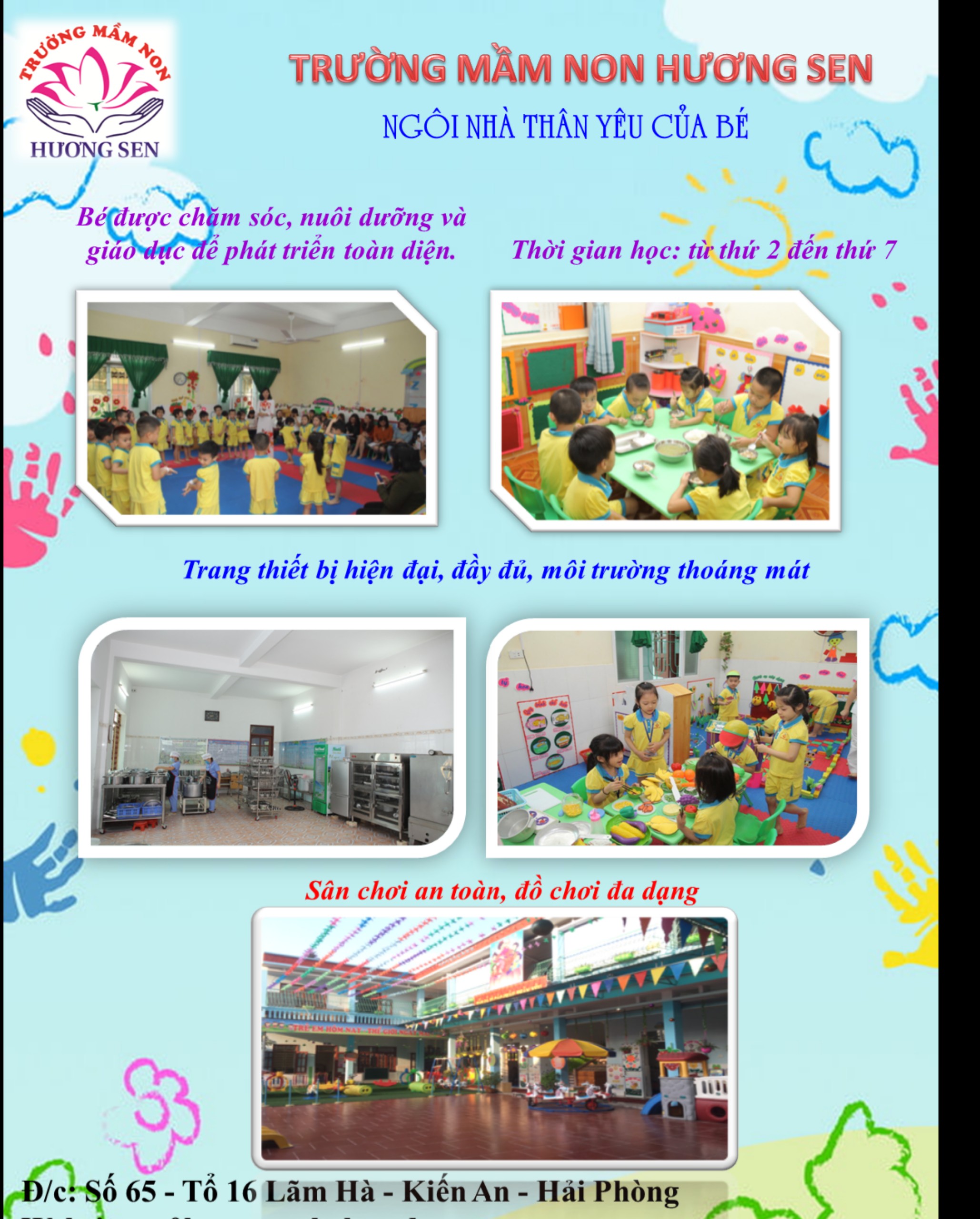 Trường Mầm non Hương Sen thuộc địa bàn phường Lãm Hà, quận Kiến An, thành phố Hải Phòng. Trường được thành lập theo quyết định số 100/QĐ-UB ngày 29 tháng 10 năm 2007 với tên gọi là trường Mầm non Hương Sen. Trải qua 15 năm xây dựng và trưởng thành, trường Mầm non Hương Sen đã nhận được sự quan tâm của Quận ủy, Ủy ban nhân dân quận Kiến An cùng với sự cố gắng nỗ lực của Hội đồng giáo viên nhà trường, sự quan tâm ủng hộ của các thế hệ cha mẹ học sinh, cơ sở vật chất nhà trường không ngừng được sửa chữa, nâng cấp và đầu tư xây dựng. Chất lượng giáo dục của nhà trường từng bước nâng cao, tiếp tục khẳng định được uy tín của trường so với các trường mầm non trong quận và thành phố.